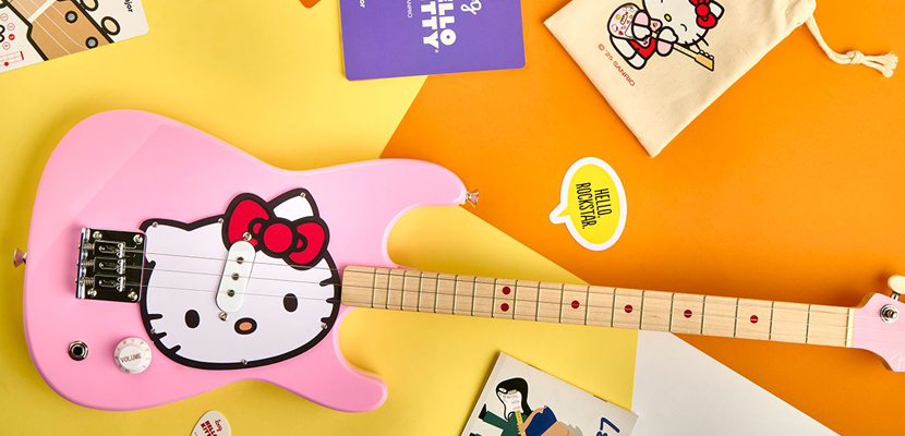 A nova linha inclui dois violões Loog Mini e uma versão mini de três cordas da Hello Kitty Stratocaster. De acordo com a fabricante, o instrumento é “perfeito para mãos pequenas que têm vontade de dedilhar, cantar e tocar”.