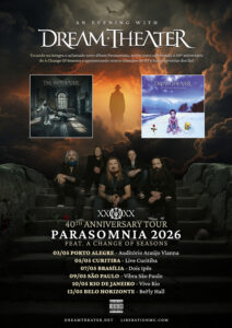 Após sua bem-sucedida turnê de 40º Aniversário na América Latina, os titãs da música progressiva e vencedores do Grammy®, Dream Theater, anunciam outra série de datas no Brasil para maio de 2026. Todas as noites da próxima turnê seguirão o formato “Uma Noite Com o Dream Theater” (An Evening With Dream Theater), um espetáculo de aproximadamente 3 horas que celebrará o recente 16º álbum de estúdio da banda, Parasomnia, que alcançou o topo das paradas. A realização é da Liberation Music Company.