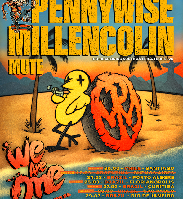 A maior edição do tradicional We Are One Tour chega ao Brasil entre os dias 24 e 31 de março de 2026, passando por seis cidades com um lineup de peso: Pennywise (EUA) e Millencolin (Suécia) lideram a turnê, que ainda traz os canadenses do Mute e abertura da paulistana The Mönic em todas as datas. A realização é da Solid Music Entertainment.